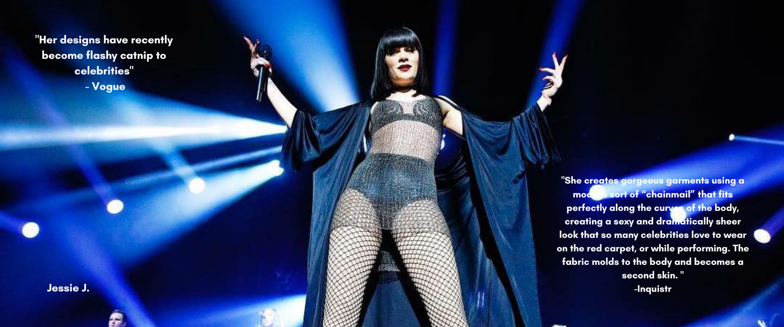 Alina Baras wearing her custom custom Natalia Fedner metal dress for her debut at Coachella.