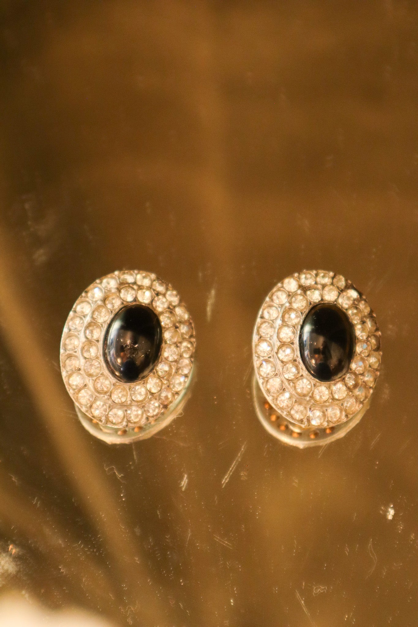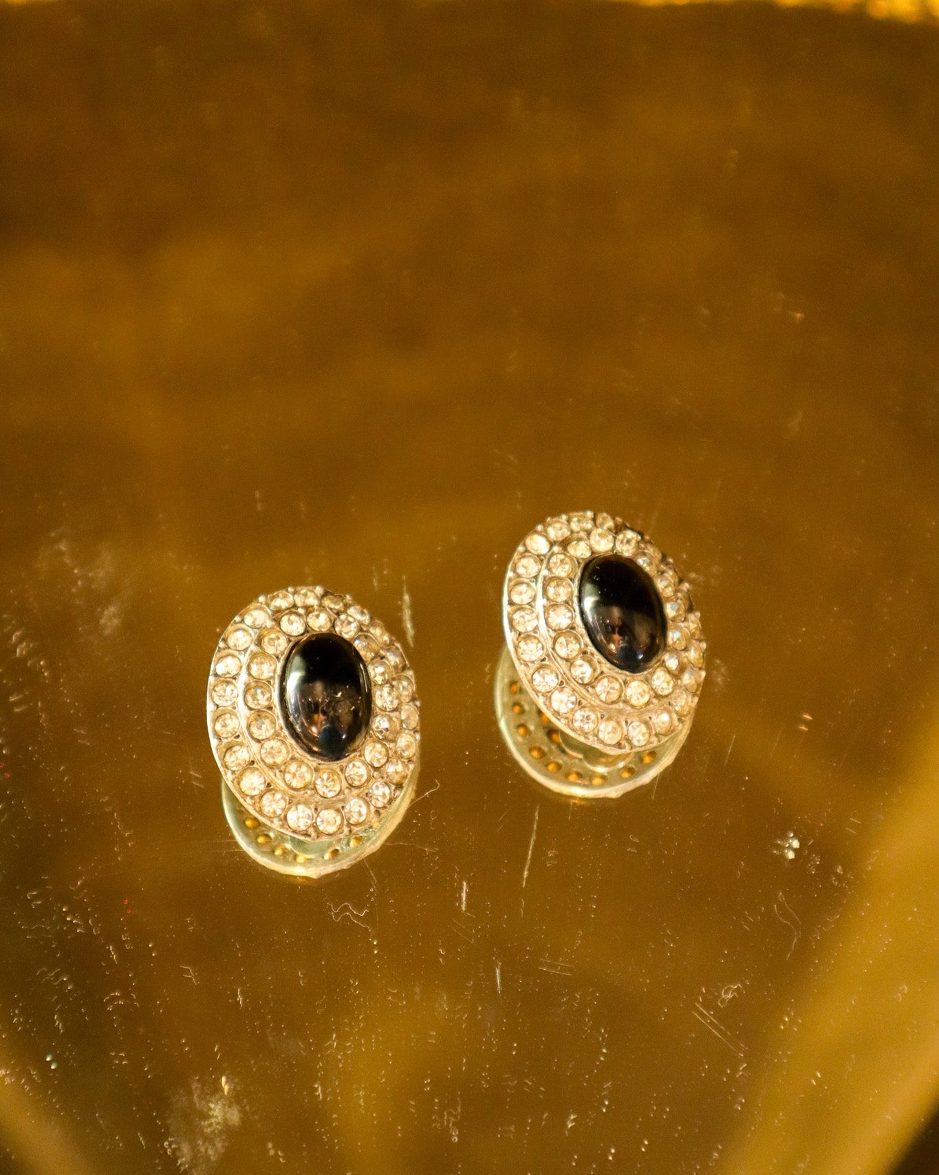 $1,950.00 USDBlack Rhinestone Oval Clip-on Earrings | Vintage