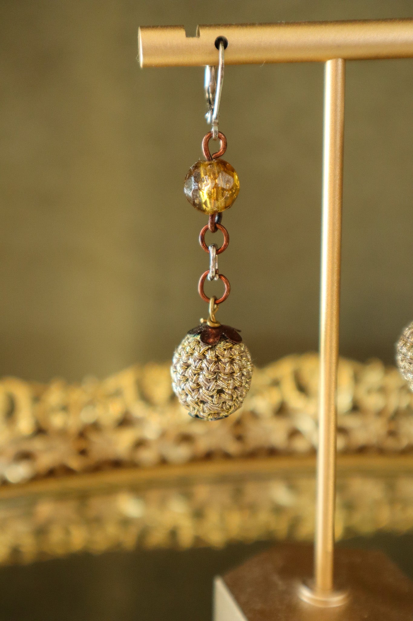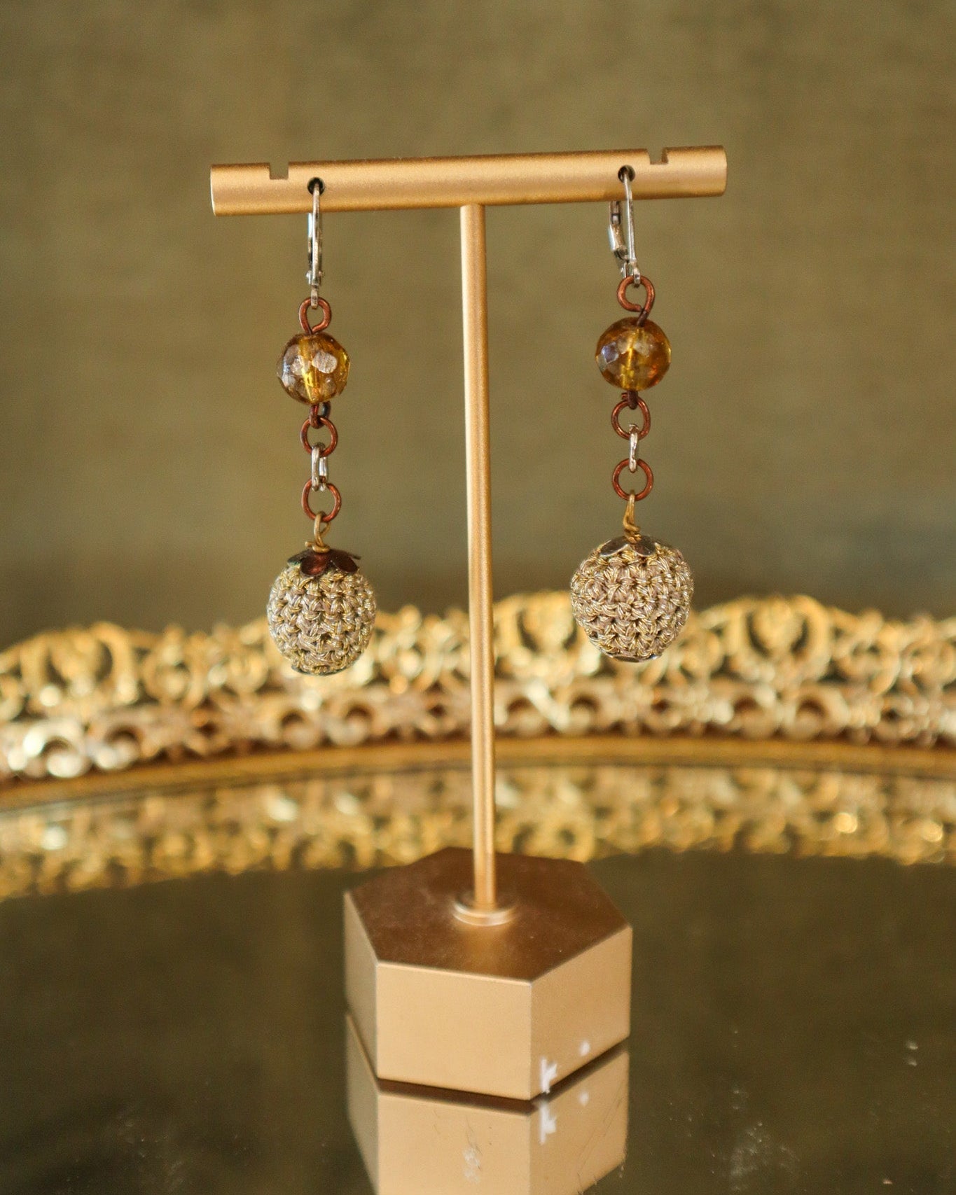 $35.00 USDAmber and Crochet Gold Ball Earrings | Vintage