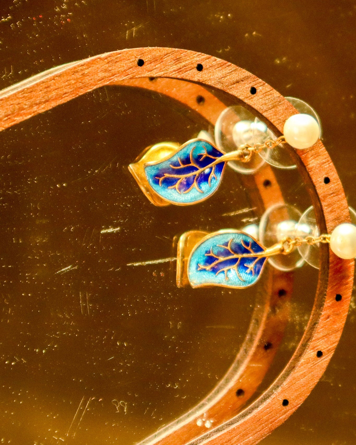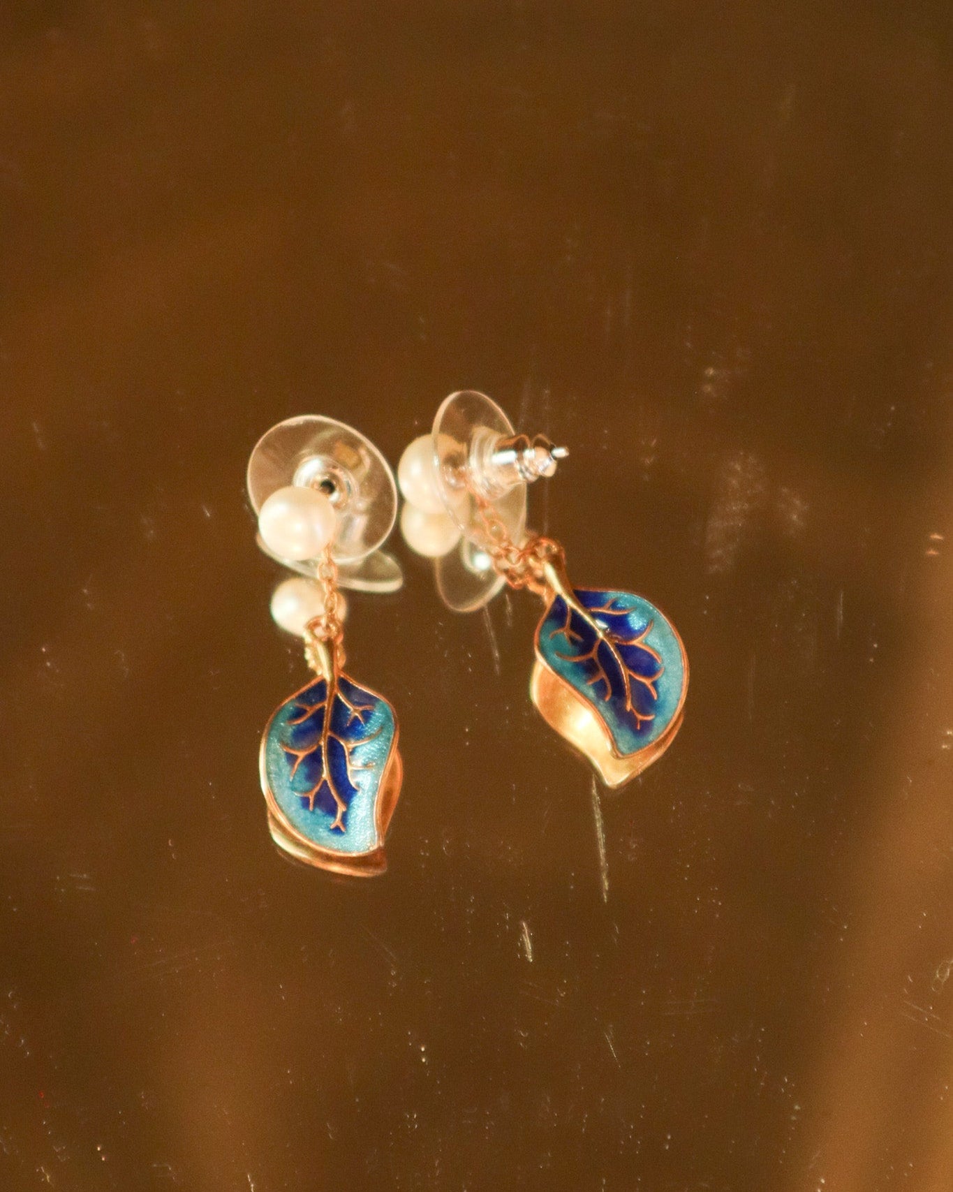 $65.00 USDBlue Leaf Earrings with Pearls | Vintage