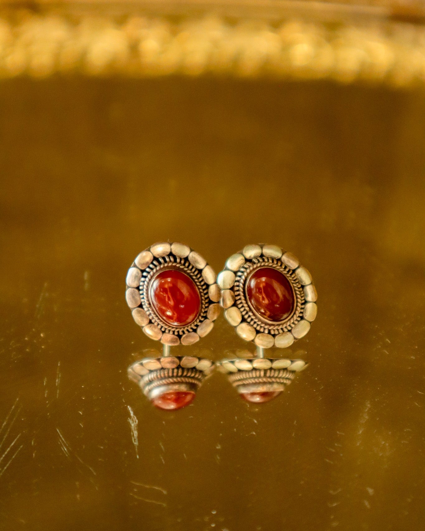$95.00 USDSterling Silver and Garnet Cabochon Earrings | Vintage