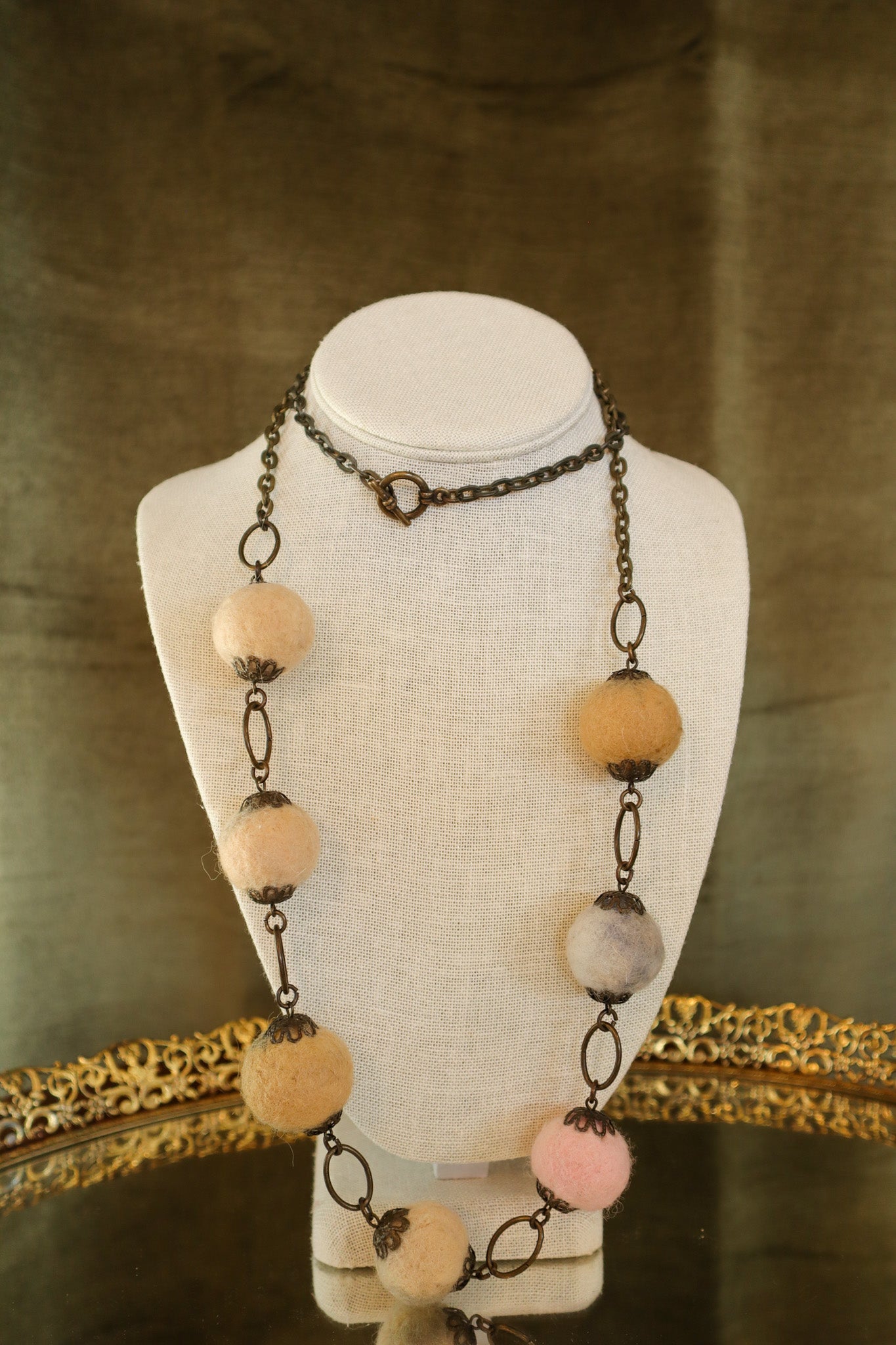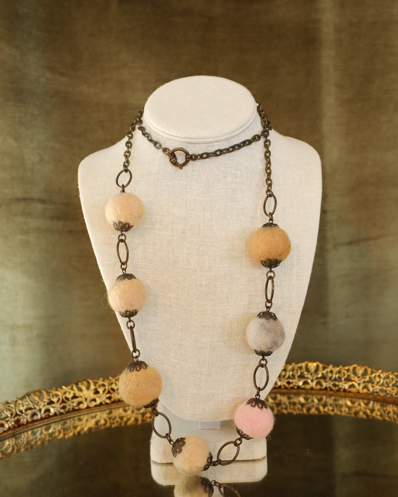 $95.00 USDBrass Necklace with Felt Balls | Vintage