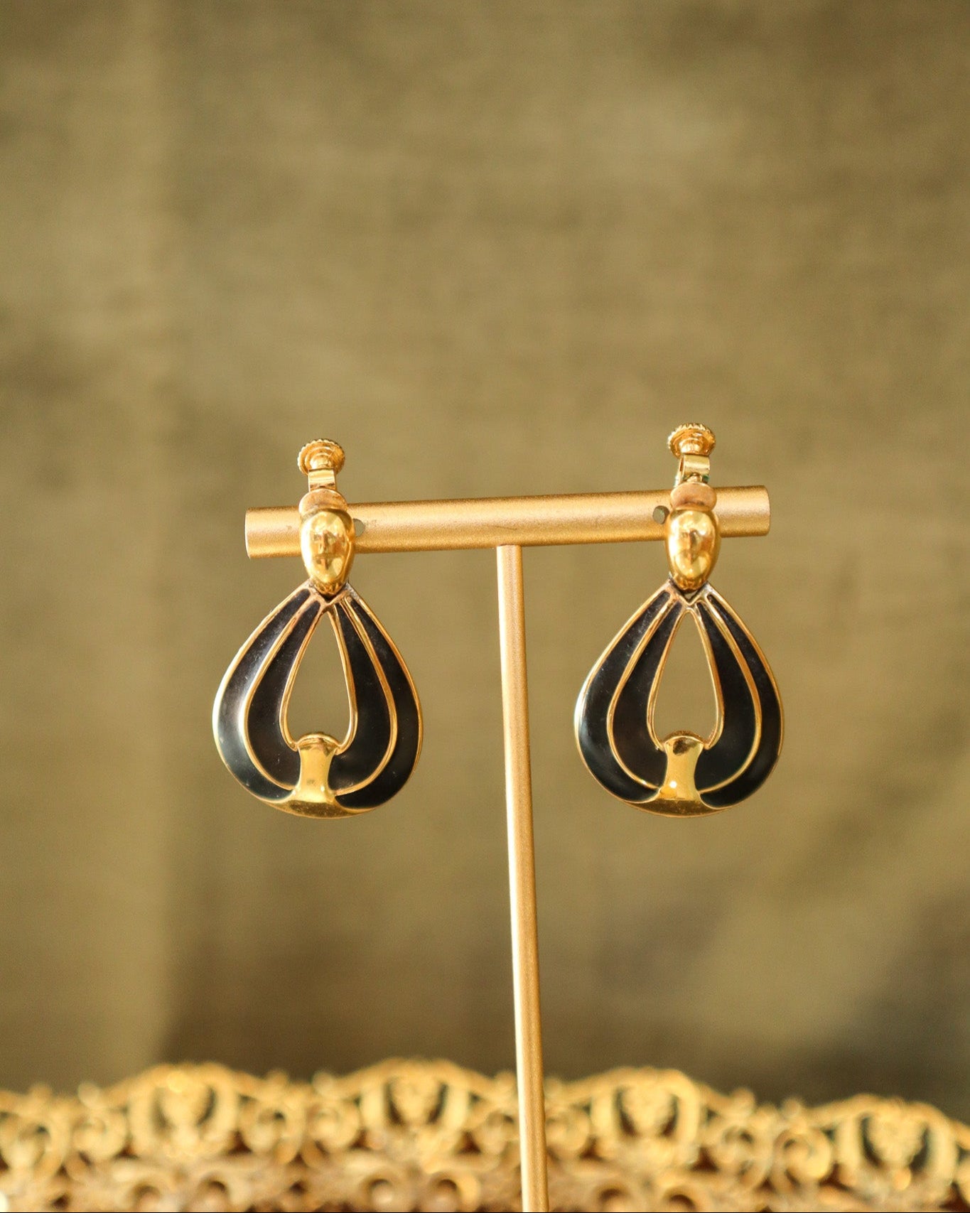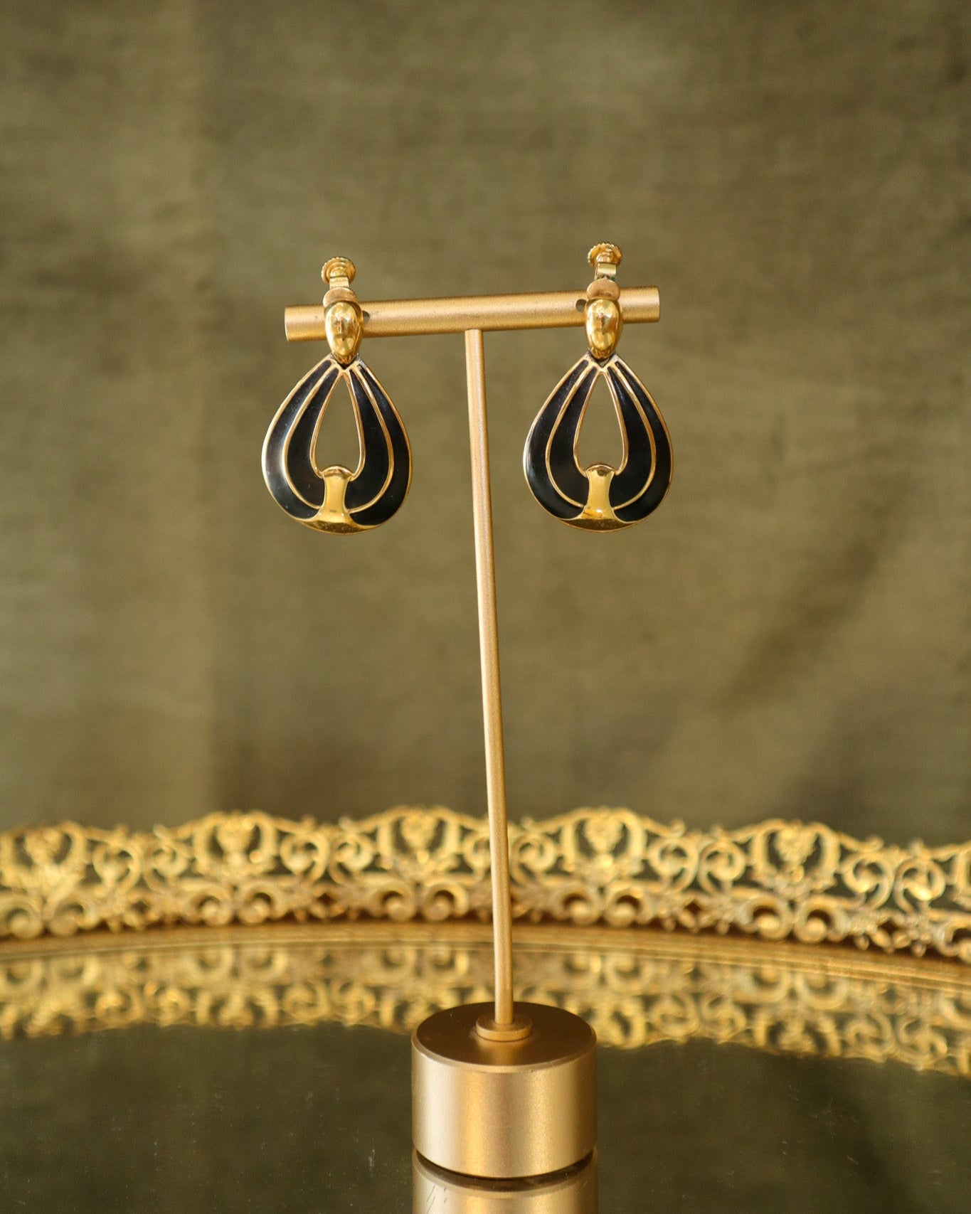 $35.00 USDNapier Gold and Black Teardrop Earrings | Vintage