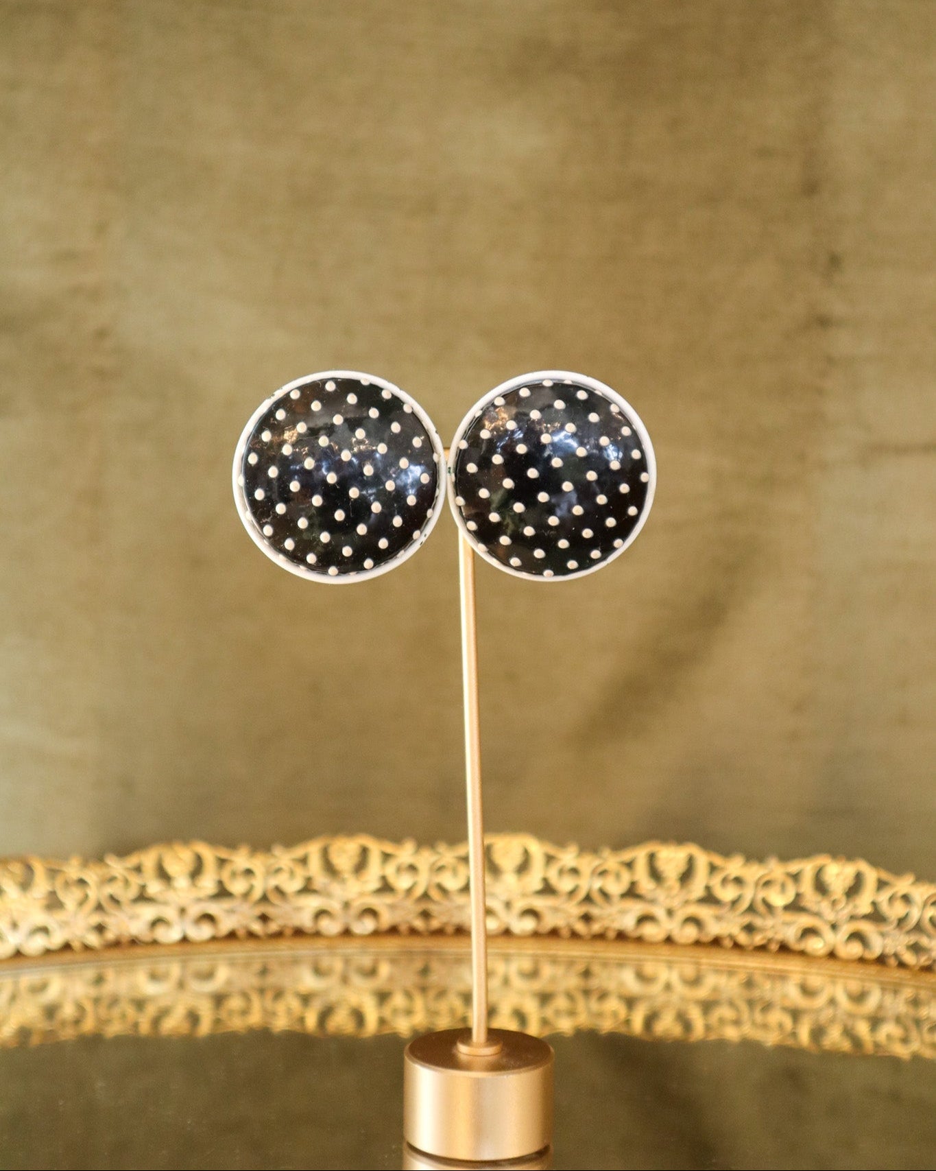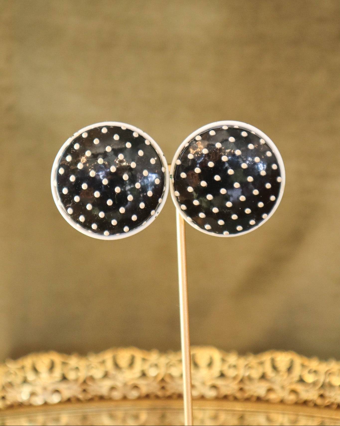 $80.00 USDRetro Round Black and White Polka Dot Clip-on Earrings | Vintage