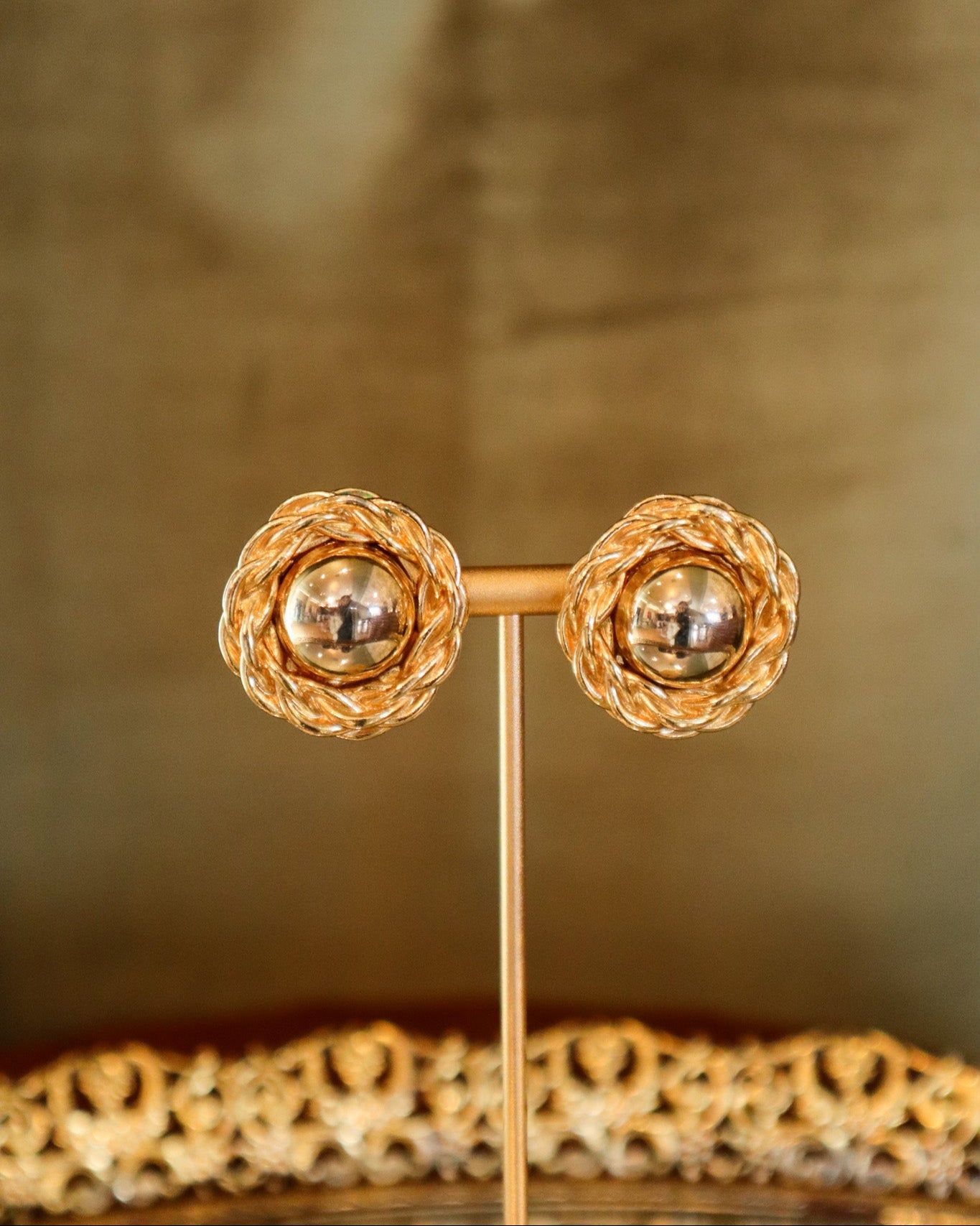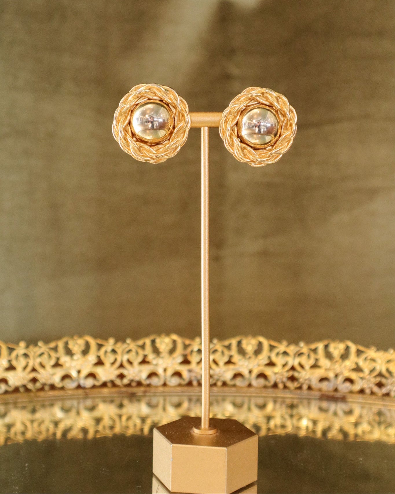 $50.00 USDGold Braided Round Clip-on Earrings | Vintage