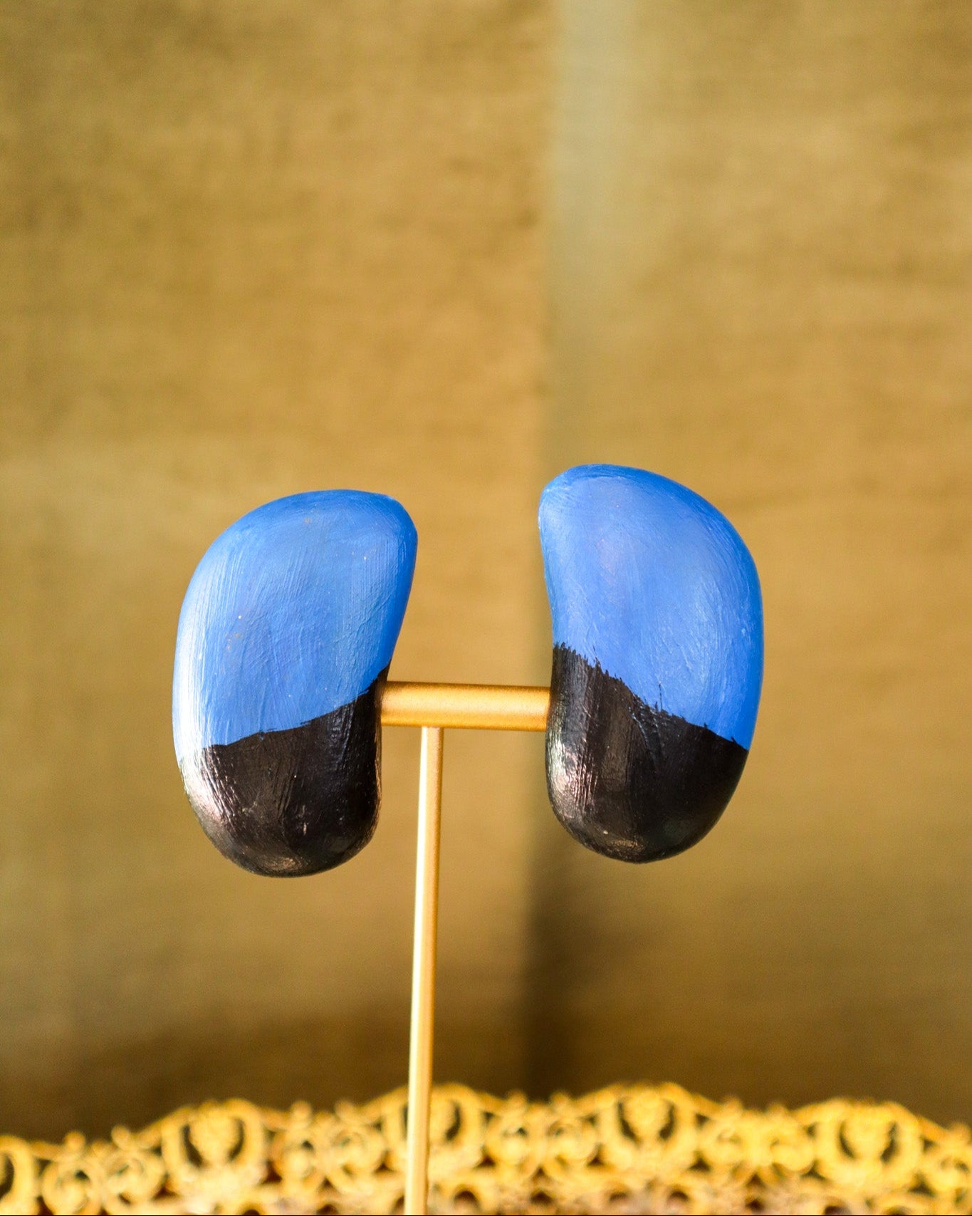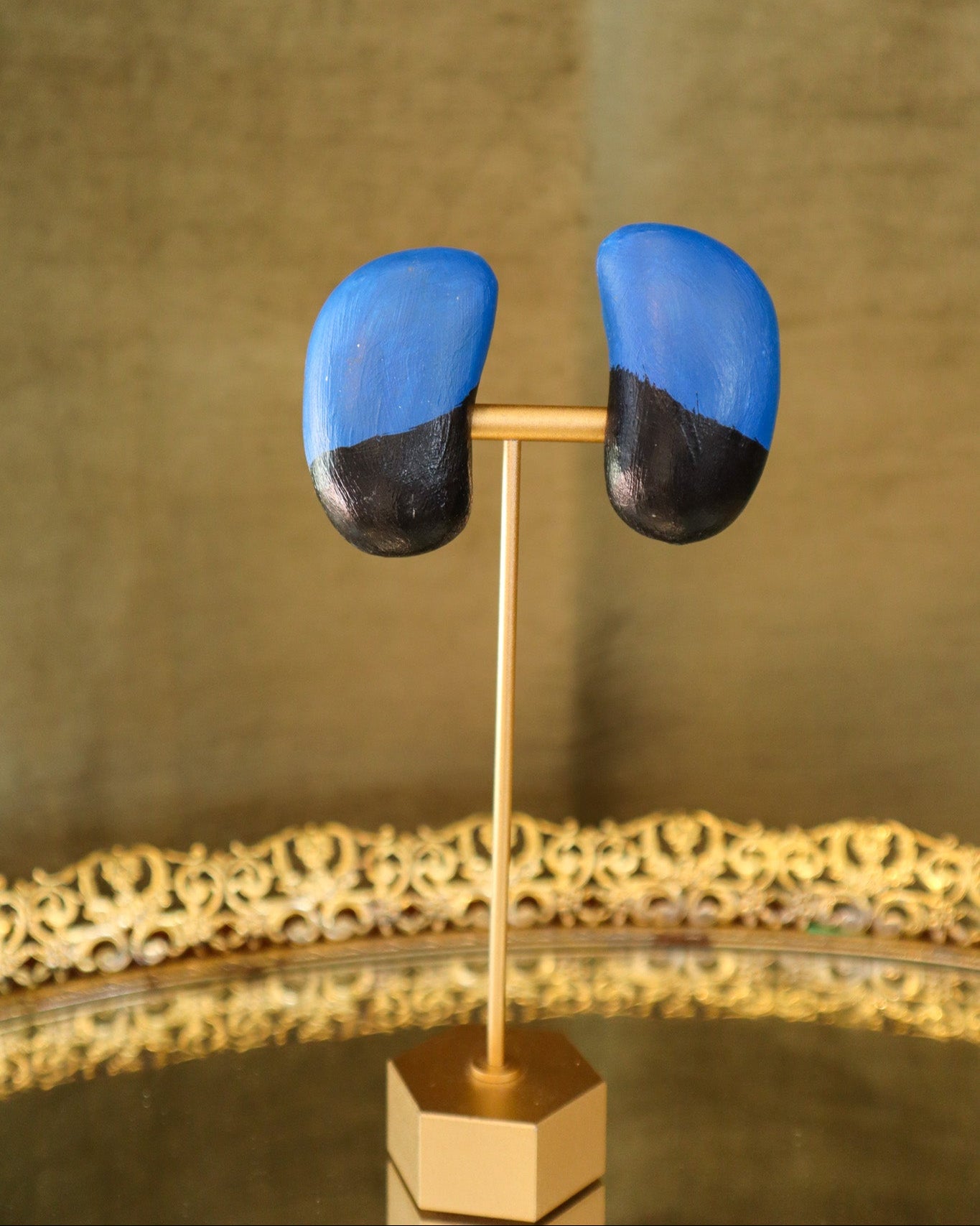 $170.00 USDNavy and Gold Cabochon Earrings | Vintage