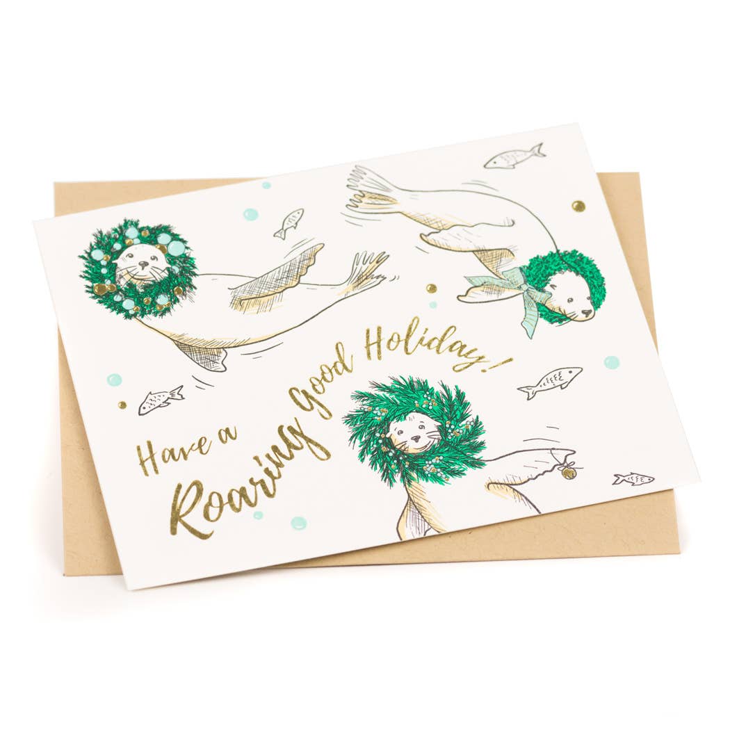 $26.00 USDHoliday Roaring Sea Lions Card | Porchlight Press Letterpress