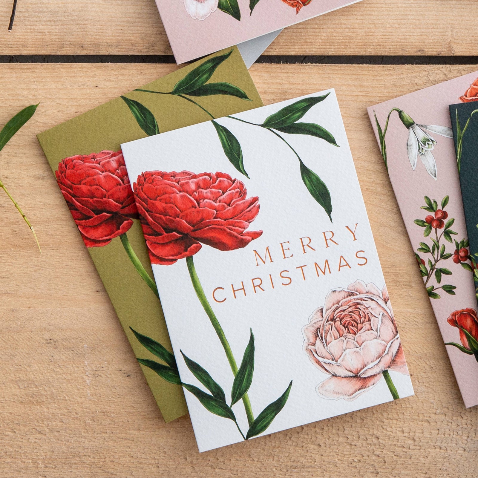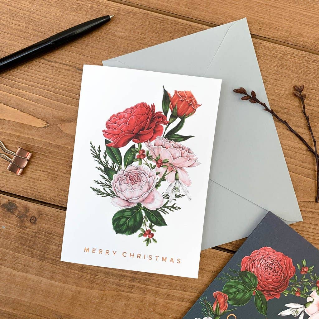 $4.80 USDChristmas Card | Berry Roses/White Bunch/Merry Christmas | Catherine Lewis Design