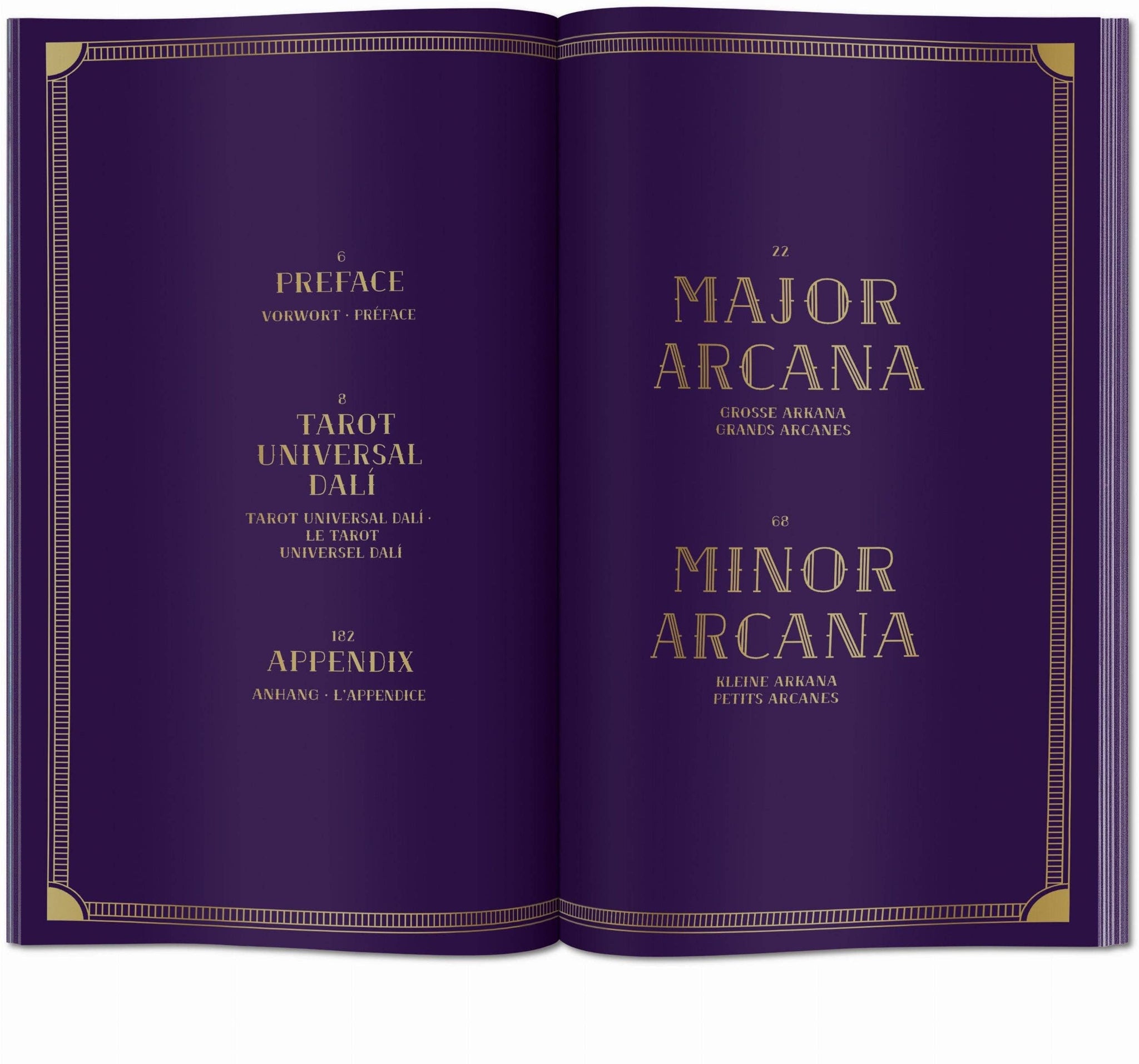 78 cards in a fresh celebration of Dalí’s inimitable custom set, complete with a booklet by renowned German tarot author Johannes Fiebig offering an introduction to Dalí’s life and the project’s making-of, a comprehensive explanation of each card’s composition, its meaning, and practical advice, step-by-step instructions on how to perform readings, and a jargon-free approach simplifying tarot for the newcomer.