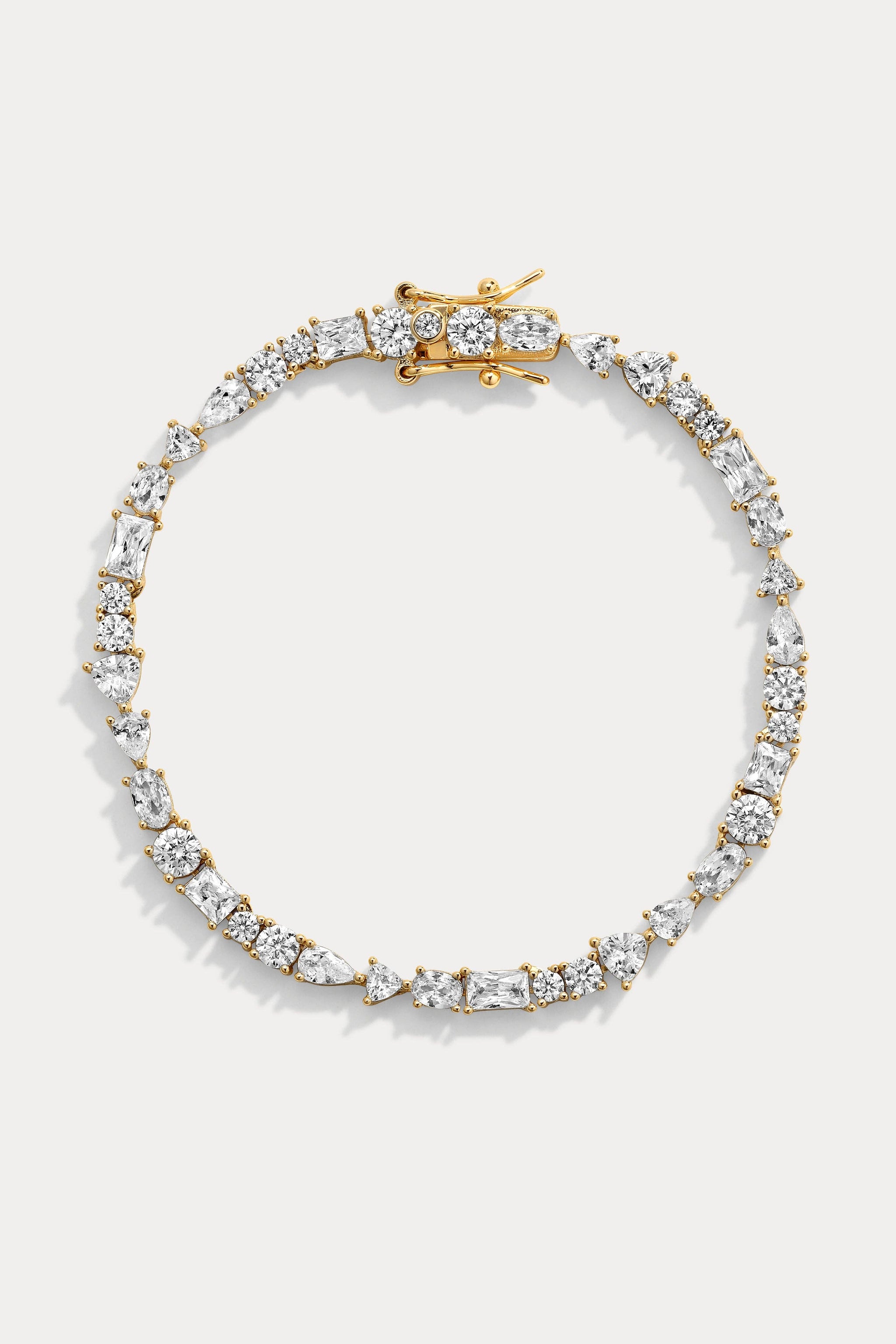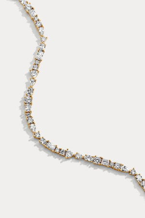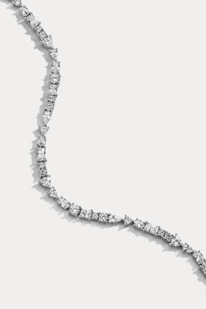 This delightful tennis bracelet sparkles with an intricate cluster of stones in a variety of cuts and sizes, creating a playful dance of light on your wrist. Perfect for adding a touch of whimsy and elegance to any outfit, it effortlessly blends classic charm with a modern twist. Whether you're dressing up for a special occasion or brightening your everyday look, this bracelet brings a joyful sparkle that’s sure to catch every eye.