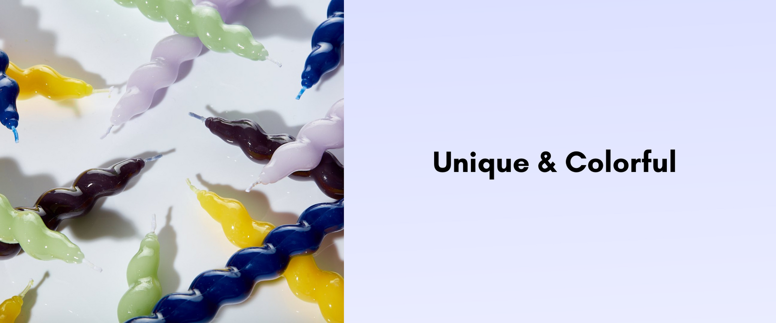 Gorgeously glossy taper candles in spirals or twists from MÆGEN (May-en). Dress your home in style and create an enchanting ambience when lighting these beautiful tapers. Make a unified statement by matching colours and shapes across your interior, or have fun choosing a variety of shapes and colours from our range to create a rich textural display.