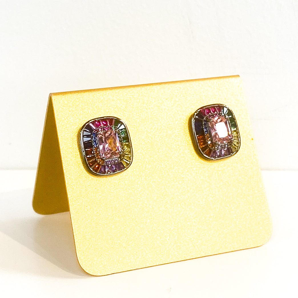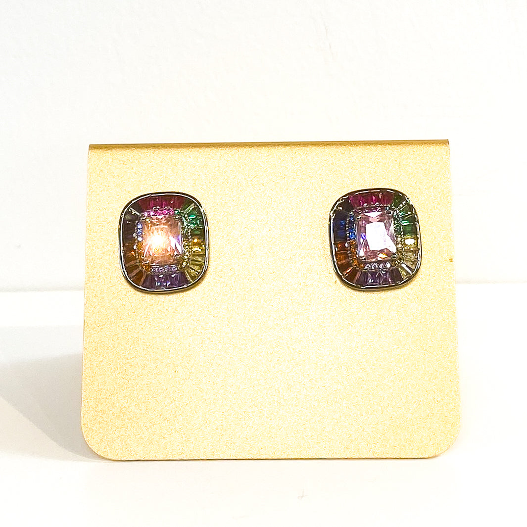 $225.00 USDEarrings | Radiant Cut Studs | Rainbow Sapphire