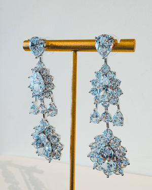 Add a splash of sparkle with these Crystal Chandelier Earrings featuring stunning pear-cut stones. Their radiant glow, paired with a delicate halo setting, makes them perfect for turning everyday looks into something dazzling. Light, graceful, and ready to charm—these earrings bring a playful sparkle to any outfit.