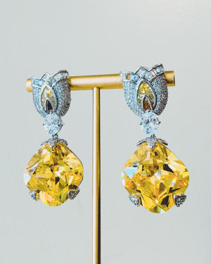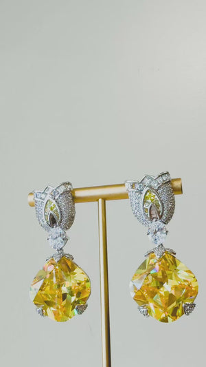 Brighten your day with these playful earrings featuring sparkling crystal Tulips and cheerful square-shaped citrine drops. Their lively design adds a fun pop of sunshine to any outfit, perfect for those who love a little sparkle with a sunny twist!
