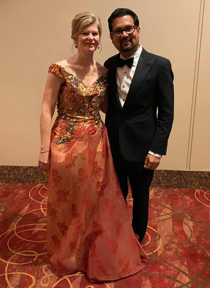 My husband and I were able to obtain tickets through an auction to what was, for us, a once-in-a-lifetime event, attending the Tony Awards. I was referred to David as part of the package we purchased to have a custom gown made for the black-tie awards ceremony.