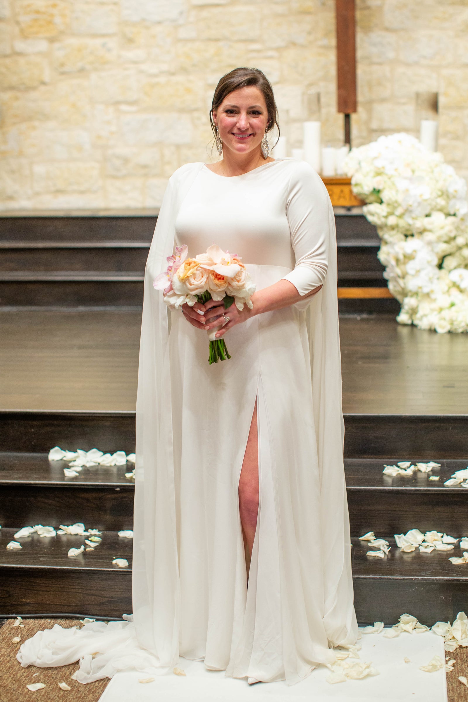 Natalie was very clear about what she wanted and that she was not up for a big Cinderella dress. She wanted something simple, clean, and dramatic, and I was totally up for it. Her dress was actually a bodysuit with two different skirts and a removable cape. I love this look because it was Natalie truly being herself and the result was stunning.